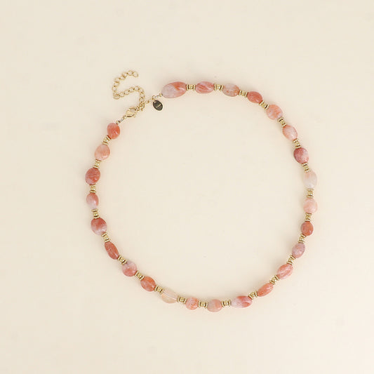 CLÉA - Collier en Pierre de Soleil et en Acier Inoxydable