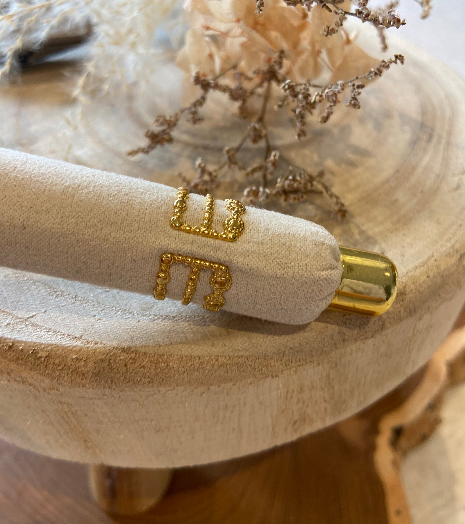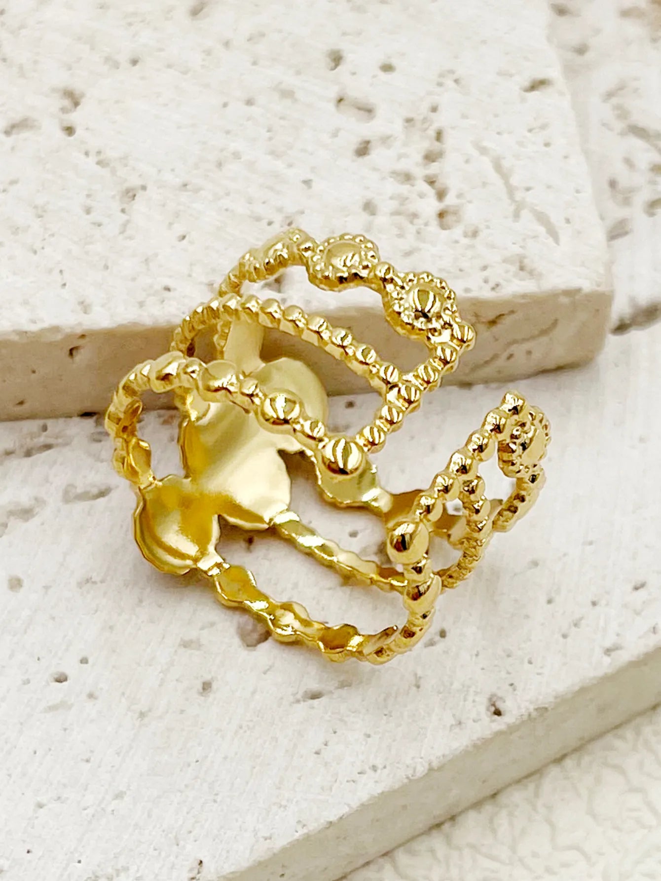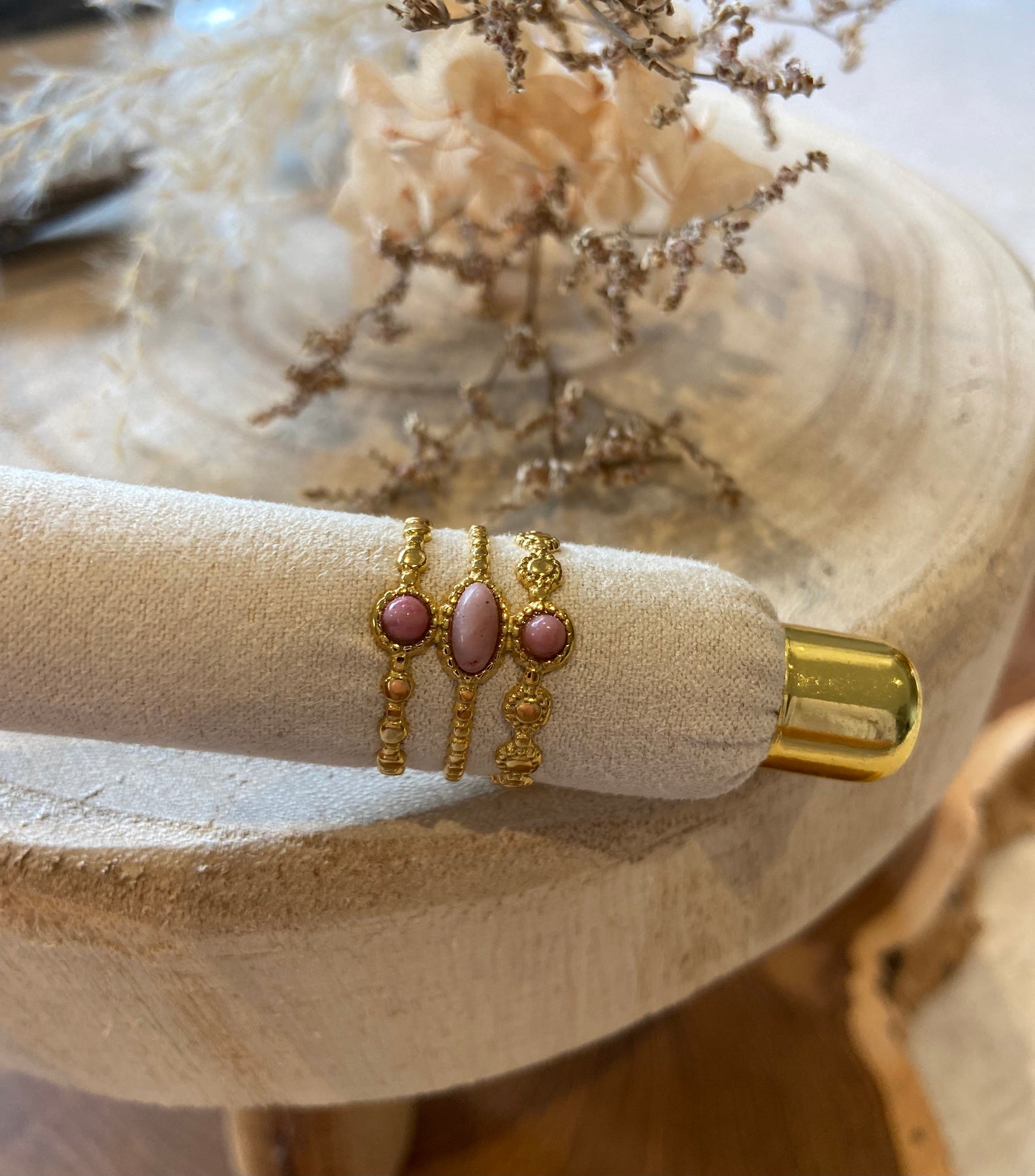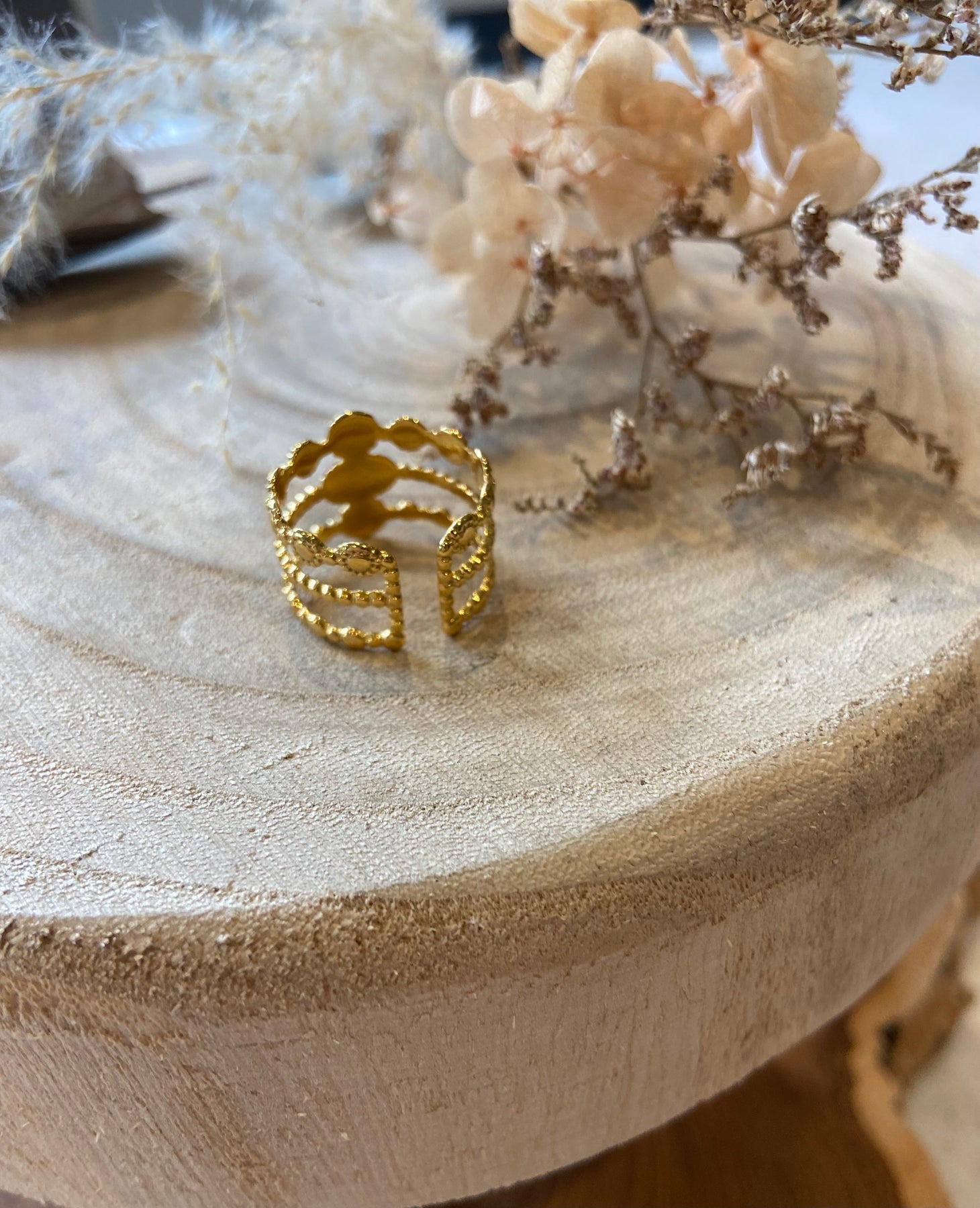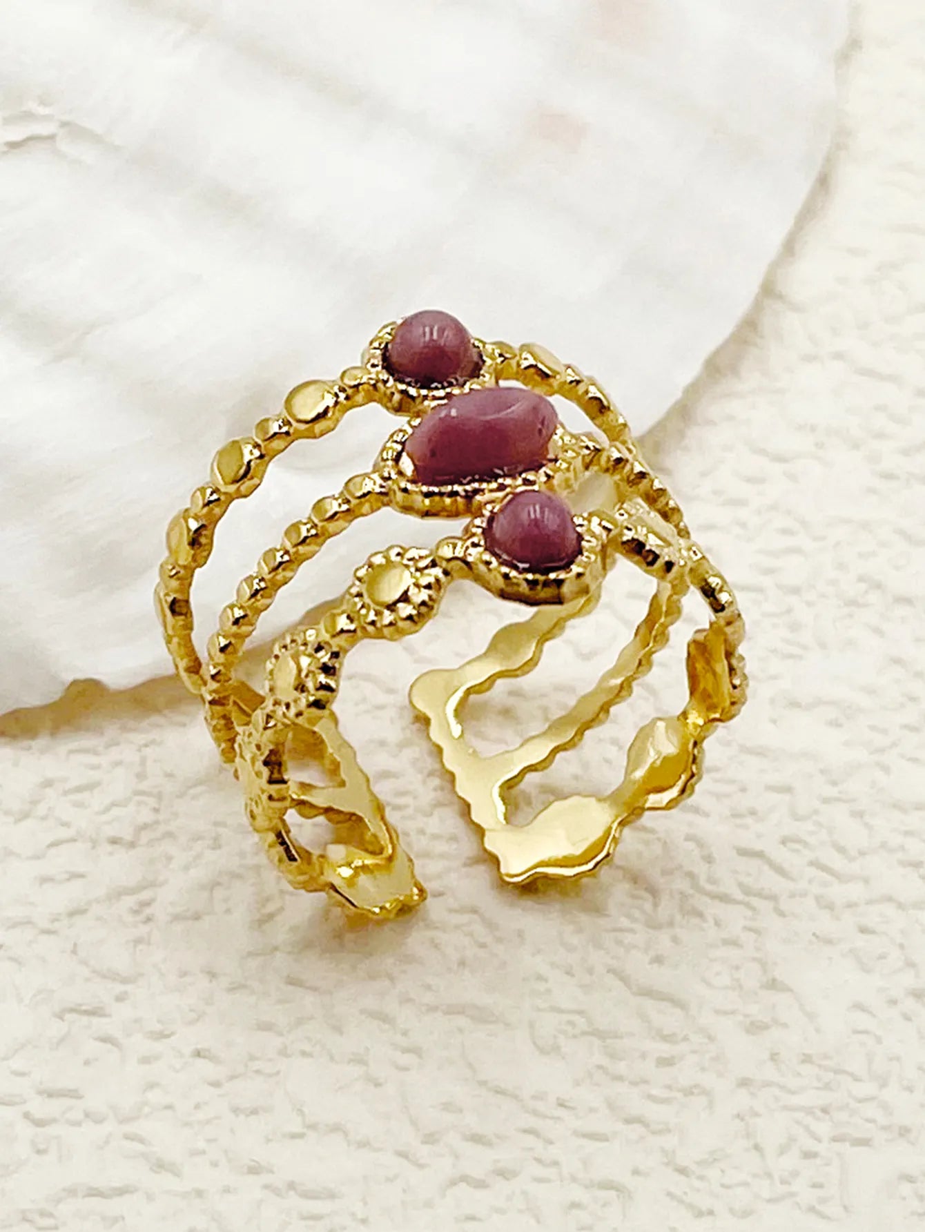 Diva- Bague en Acier Inoxydable Doré ajustable avec des pierres violettes