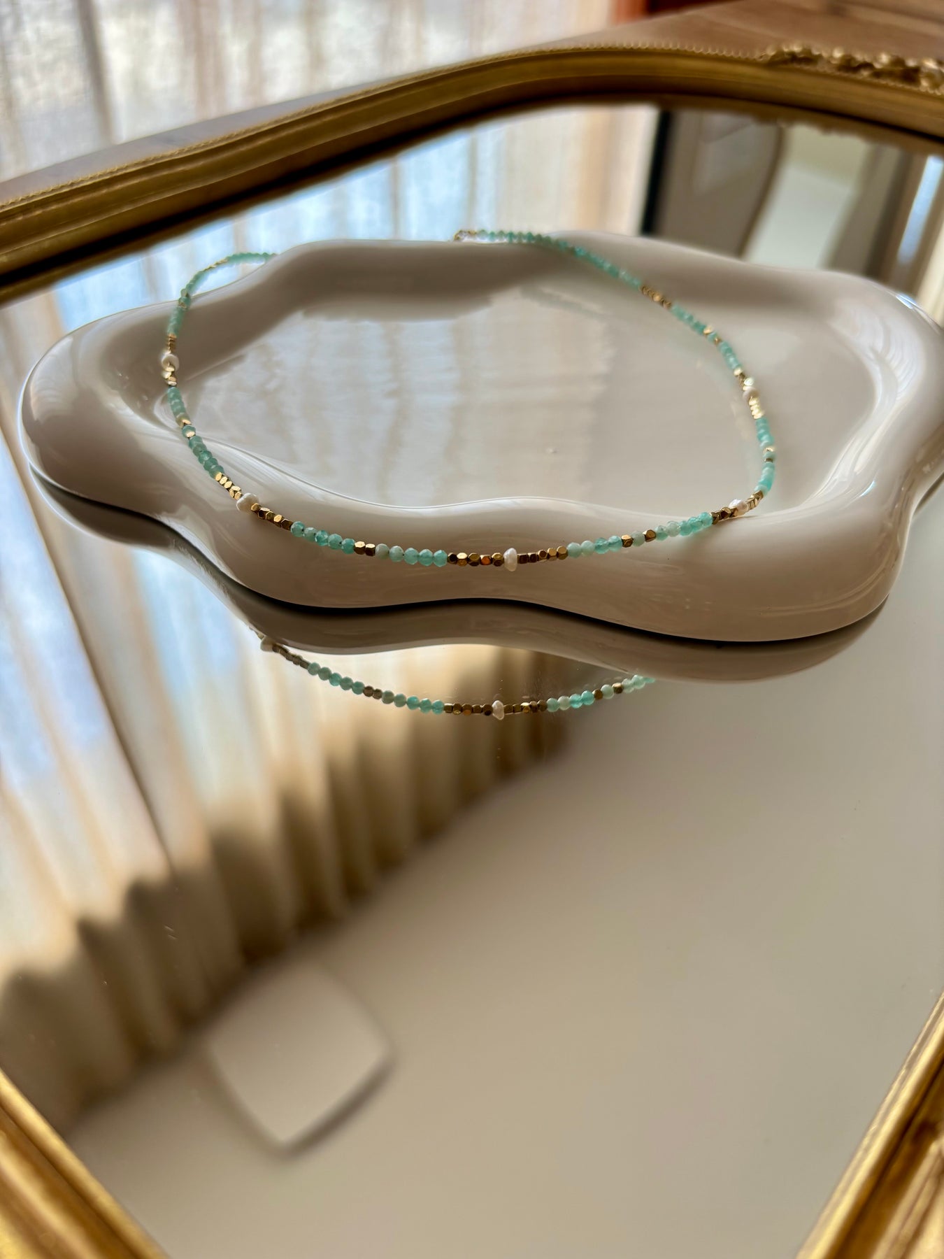 Ce bijoux en pierre naturelle et en acier inoxydable doré, une véritable alliance entre élégance intemporelle et robustesse inégalée.