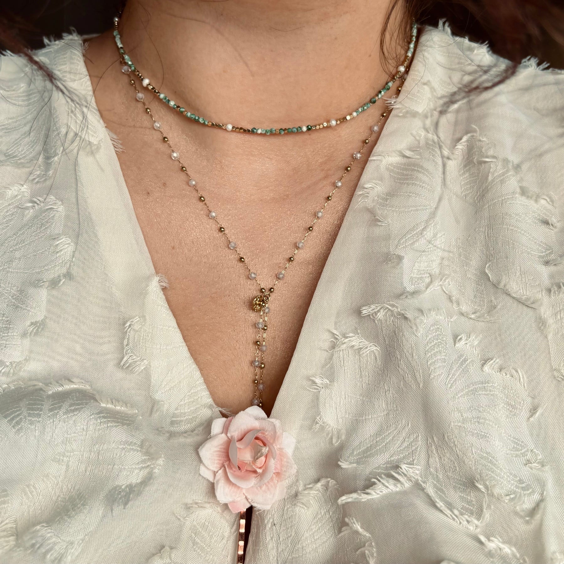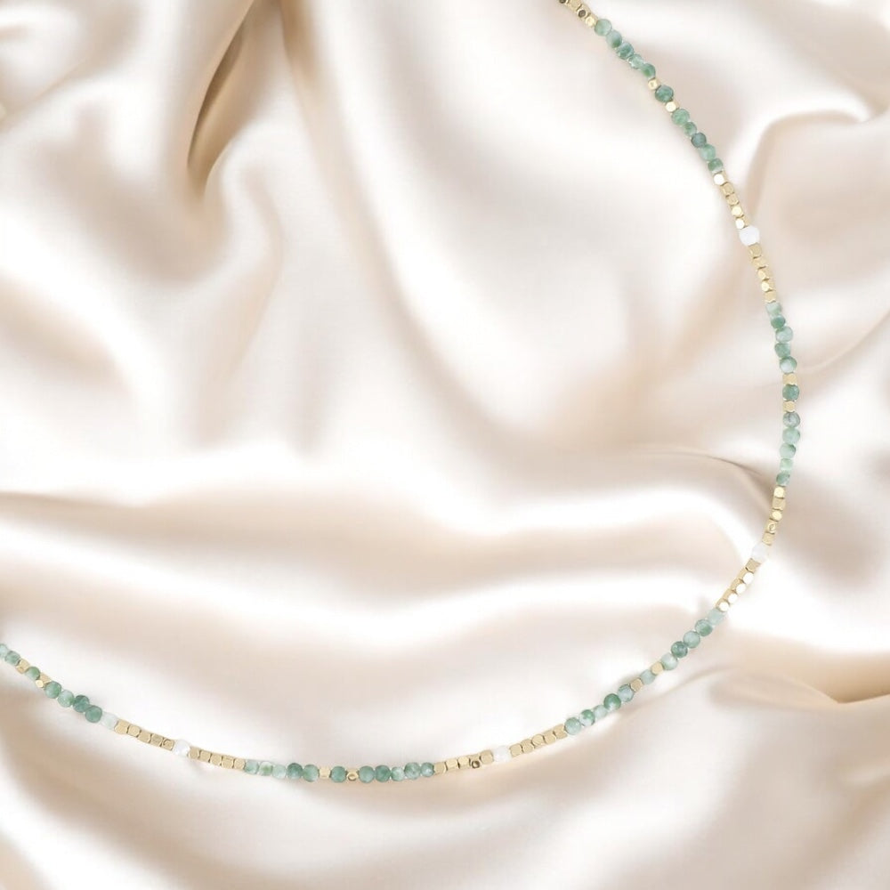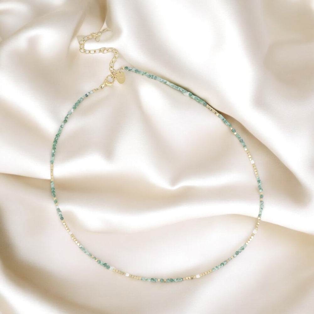 SHELLY - Collier en Pierre Naturelle Agate Mousse, en perles d’eau douce et en Acier Inoxydable