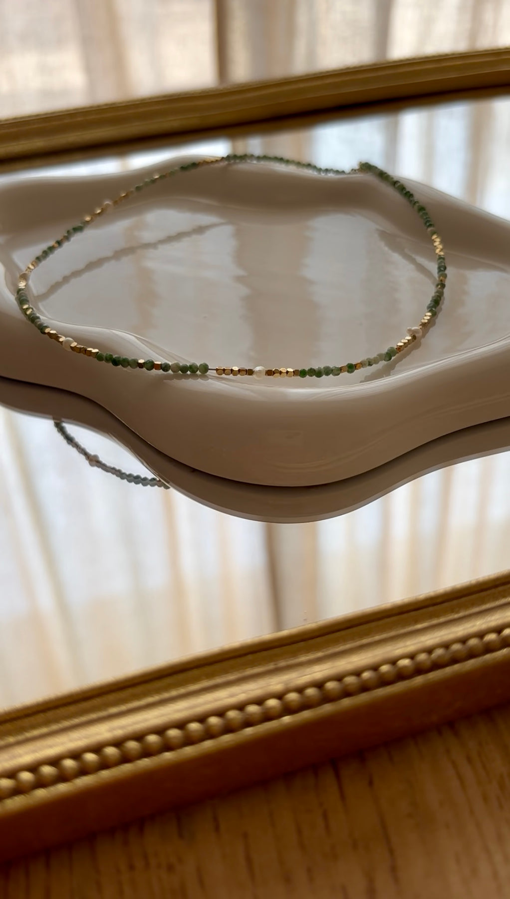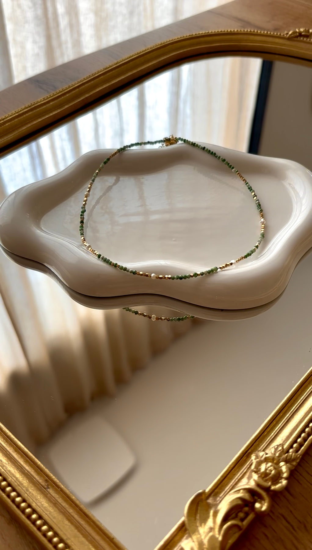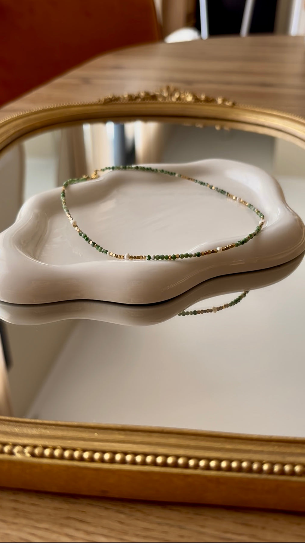 SHELLY - Collier en Pierre Naturelle Agate Mousse, en perles d’eau douce et en Acier Inoxydable