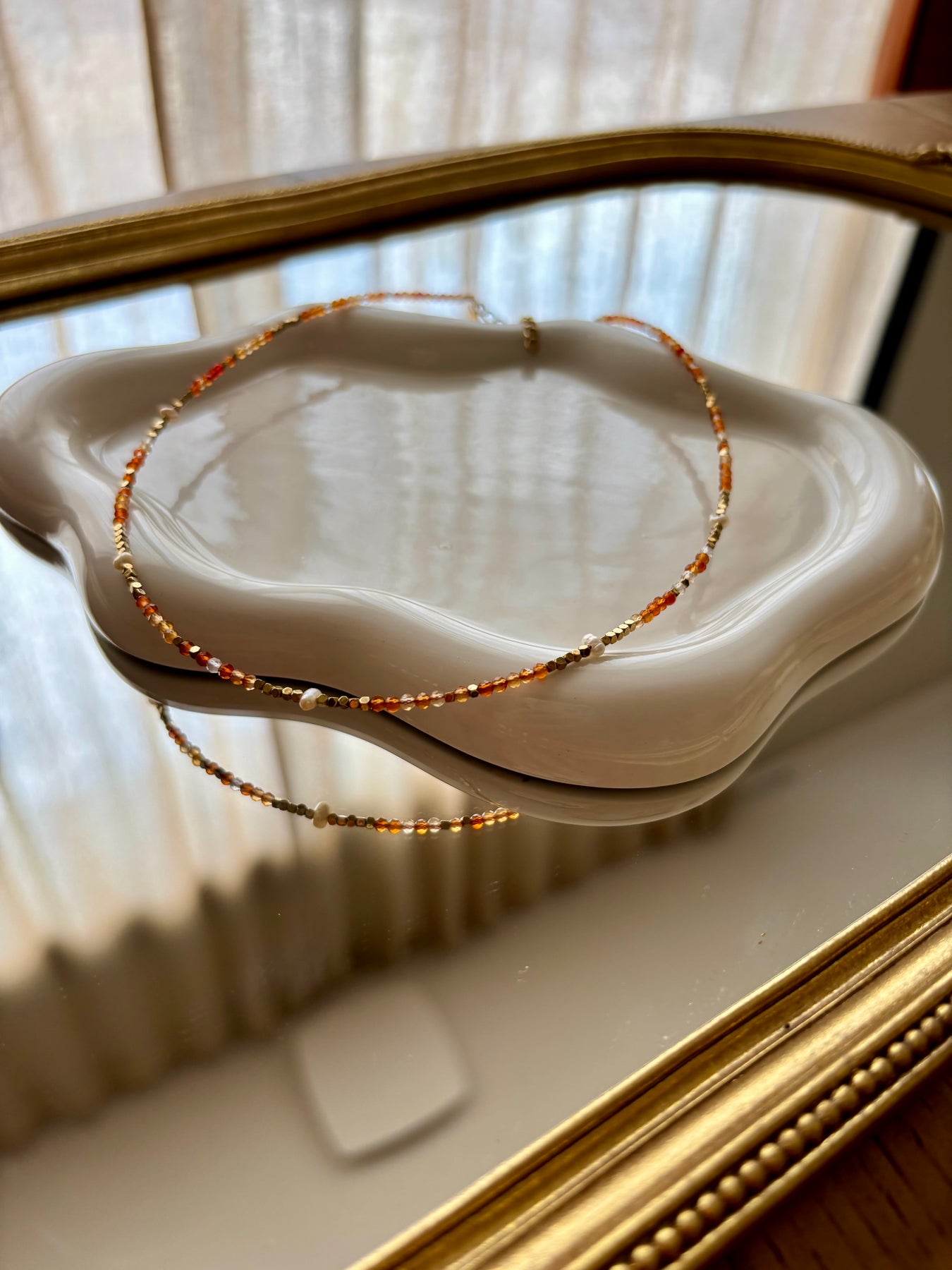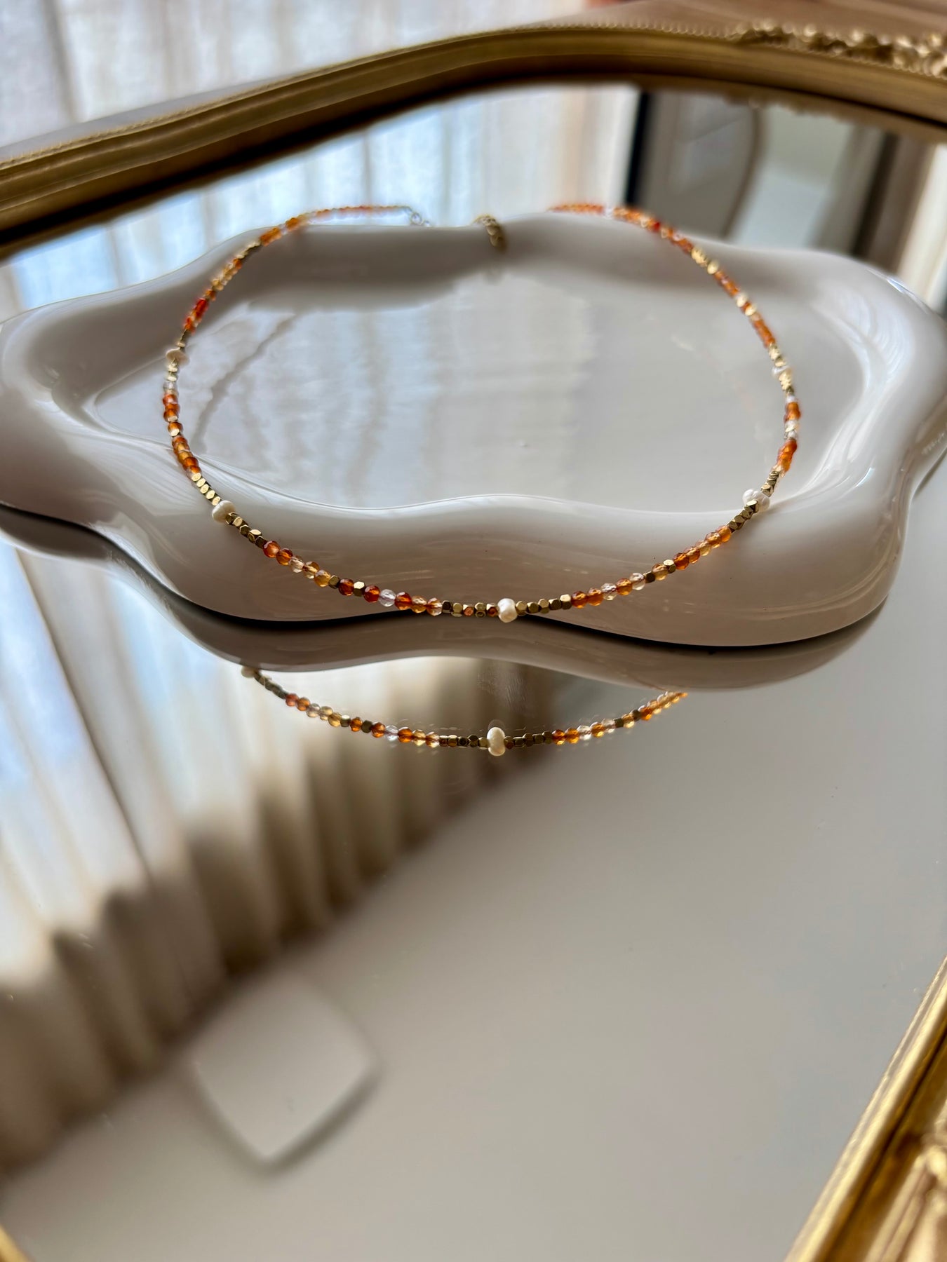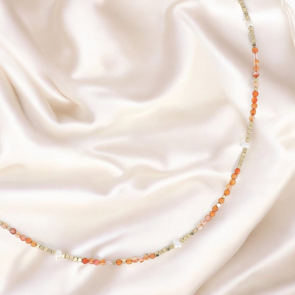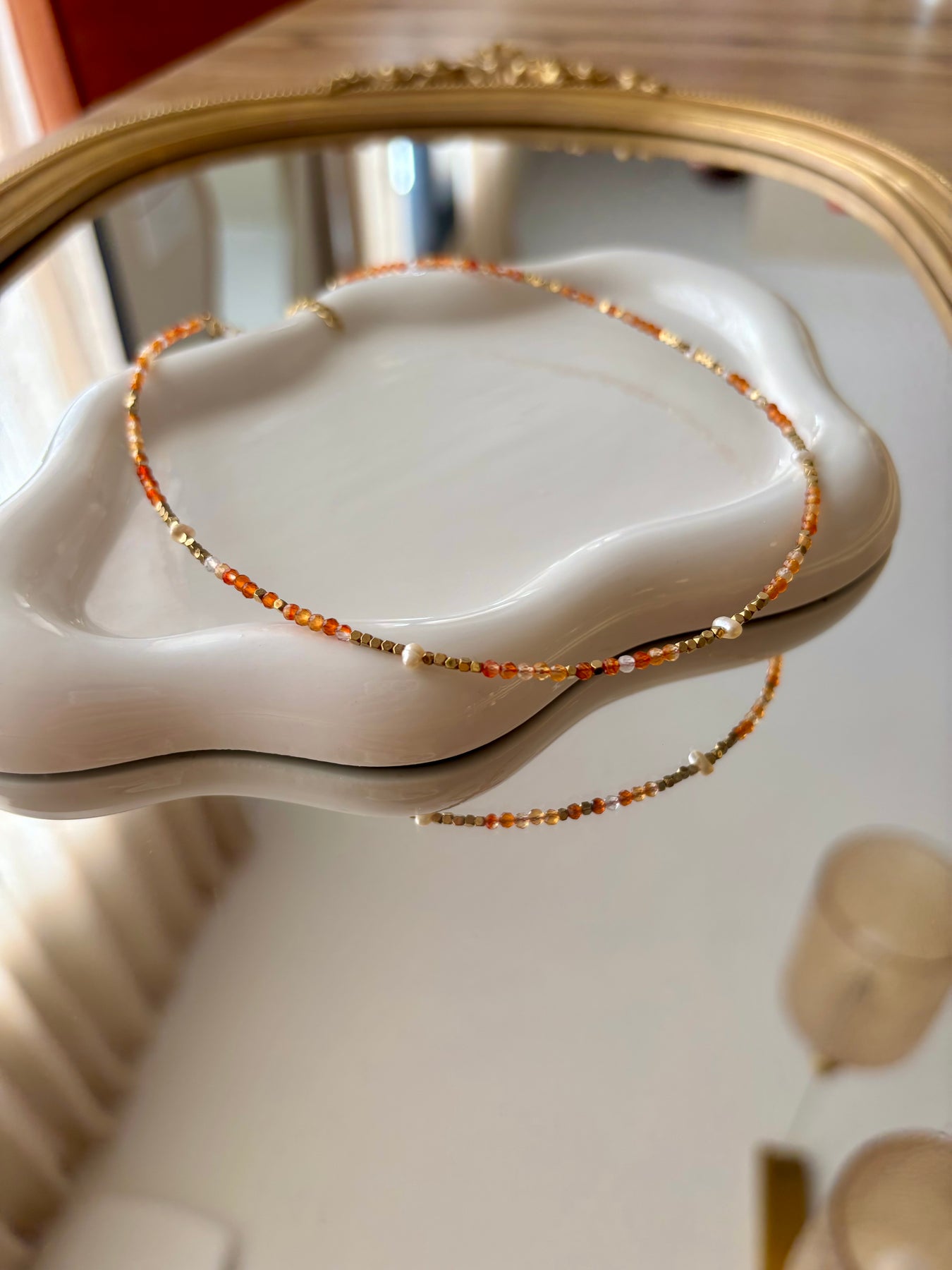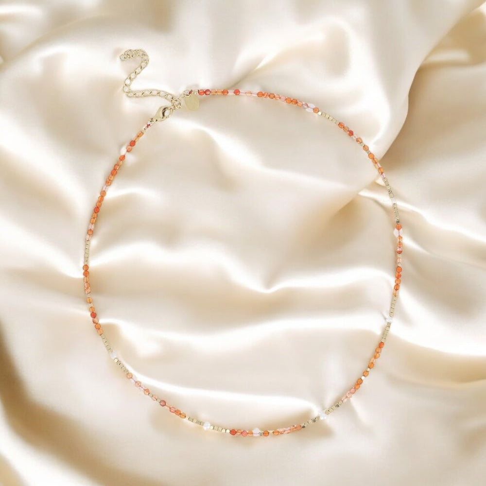 Le collier BIANCA , orné de pierre naturelle agate rouge et d' acier inoxydable doré , est une véritable alliance de raffinement et de solidité . Sa finition dorée étincelante capte la lumière à chaque mouvement, créant une brillance subtile qui met en valeur la couleur riche et profonde de l' agate rouge . Ce bijou unique ajoute une touche de sophistication à votre look, que ce soit pour une occasion spéciale ou pour égayer vos tenues quotidiennes.
