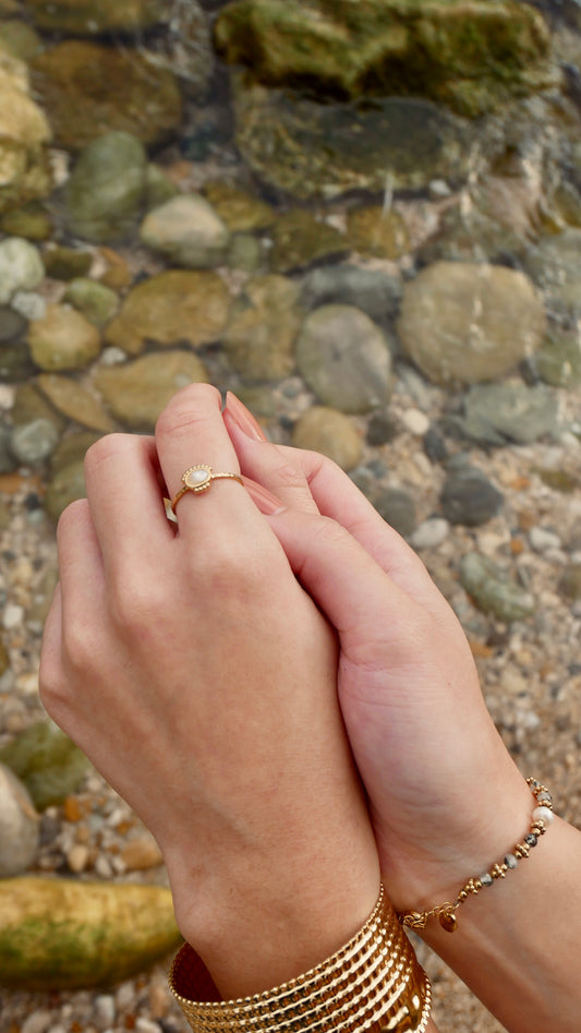 Bague ajustable en Acier Inoxydable et en Nacre - PALMA