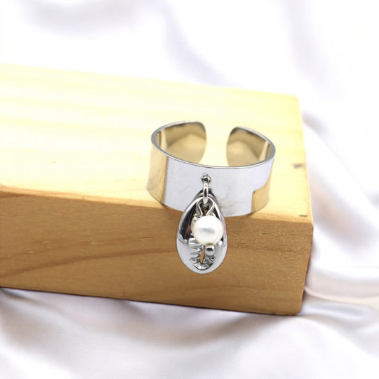 Coquillage - Bague breloque réglable en Acier Inoxydable