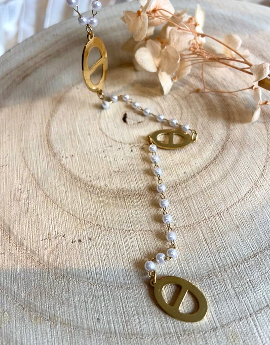Romy - Collier Y Perles 3 double D en Acier Inoxydable