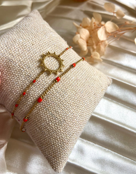 Sunny - 2 Bracelets d’été en Acier inoxydable et des perles oranges