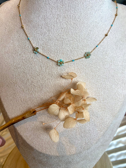 Selena - Collier fleur Bleu d’été en Acier Inoxydable