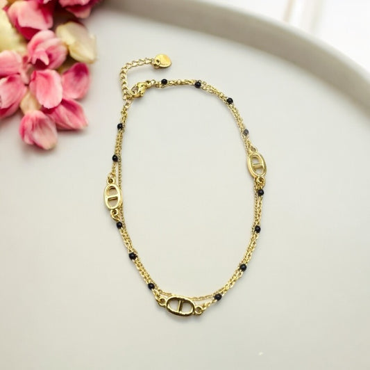 Lyly- Bracelet de Cheville en Acier Inoxydable - Blanc, Noir et Orange