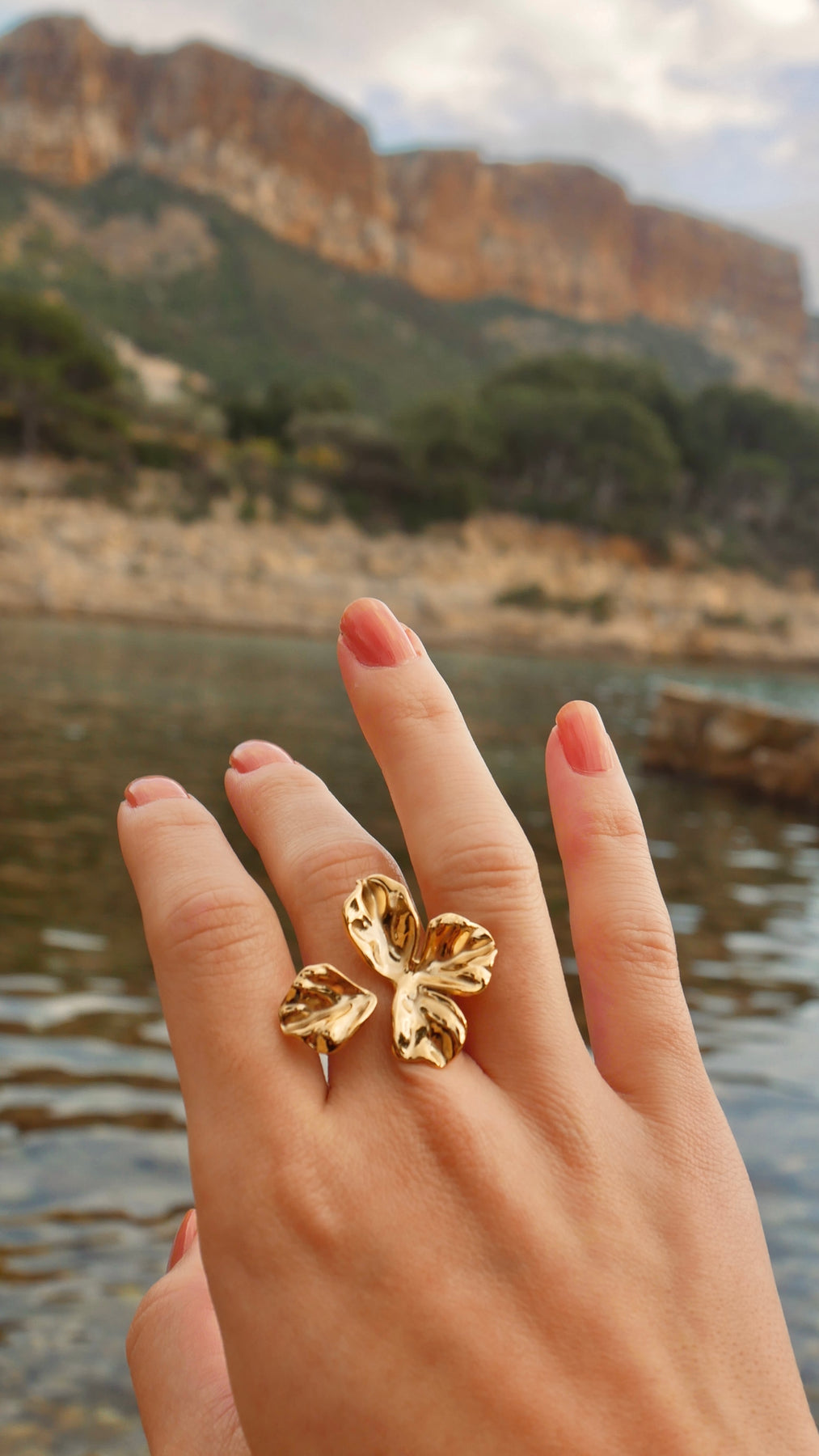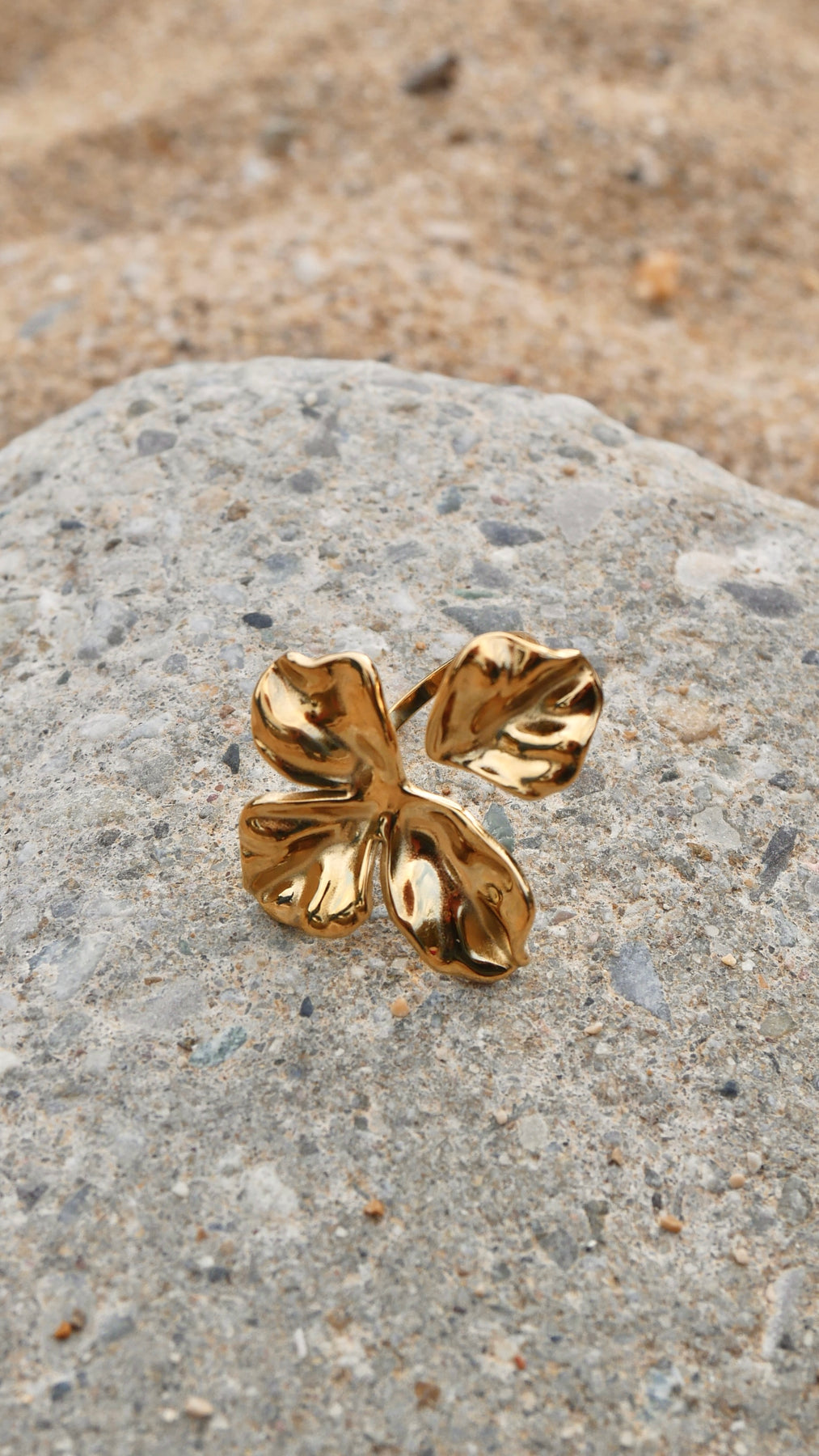 Cette bague bohème en acier inoxydable doré est une véritable œuvre d’art naturelle. Elle est ornée d’un design floral sculptural, représentant une fleur aux pétales larges et texturés. Chaque pétale présente un aspect martelé et irrégulier, qui donne un effet organique et artisanal au bijou. Son fini doré brillant capture la lumière, ajoutant une touche d’élégance audacieuse. Réglable, elle s’adapte à différentes tailles, tout en restant légère et confortable à porter. Cette bague est idéale pour celles qui recherchent un accessoire original et raffiné, inspiré de la nature.