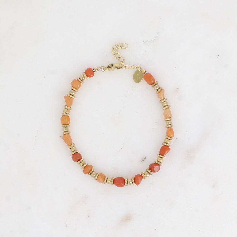 Bracelet pierre naturelle, bracelet pierre de soleil, bijoux bohème, bracelet lumineux, bracelet doré, pierre porte-bonheur, bracelet acier inoxydable, bijou artisanal femme, cadeau original, bijoux minimalistes.